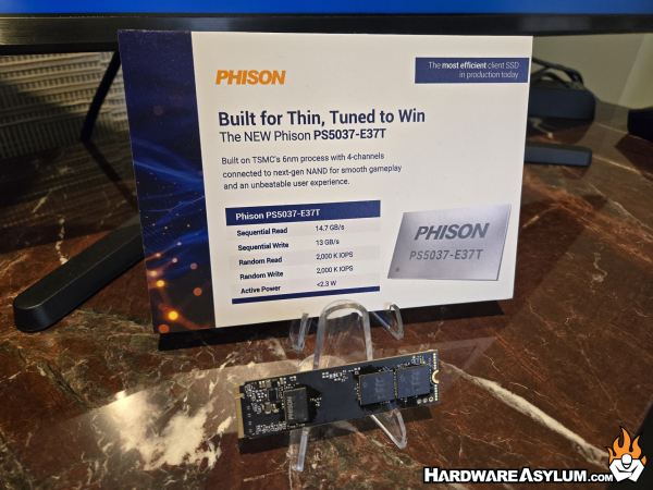 Not much has really changed in the types of products that were being shown. Most of them are copies of copies with others being incremental updates to existing products. For instance, Phison was showing some AI offerings and the new E37T controller. This Gen5 4-channel controller is quite fast a 14.7 GB/s and extremely efficient with an active power of around 2.3W.