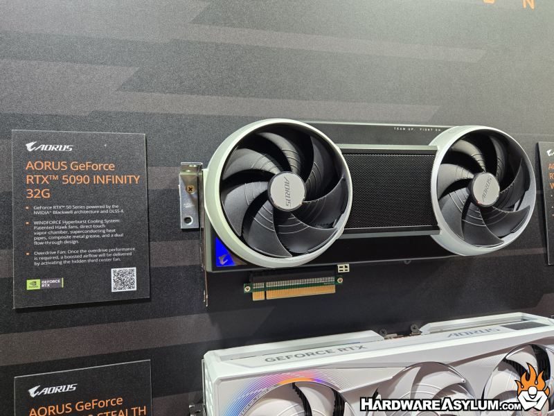 I also have to chuckle at the design of the AORUS GeForce RTX 5090 Infinity graphics card. It seriously is a unique design and seems like a cross between the TRON Light Cycle and the thrusters on a Star Wars Podracer. Of course, what you cannot see is the center fan behind the metal screen because you cannot sell a retail consumer level video card without three fans,... for reasons.