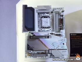 At the Gigabyte booth there were some refresh motherboards in display with the X3D name. Given that these are AMD Ryzen motherboards I can only assume they are built and tuned to take advantage of the larger Ryzen X3D processor cache and performance advantage.