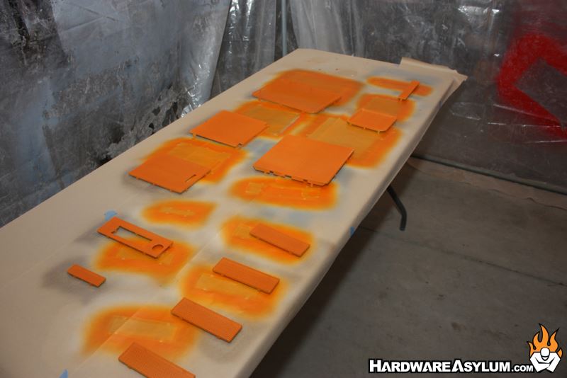 Both the main chassis and the bottom of the case were hung for easy painting while the grills were placed on the table.