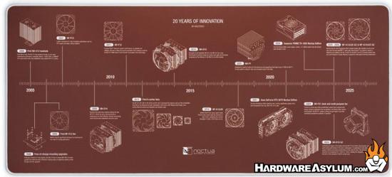 Vienna, October 23rd 2025 – Noctua today celebrated its 20-year brand anniversary with a fresh, completely revamped website as well as the new NP-DM3 desk mat that commemorates key milestones in Noctua’s history of innovation – from the first NH-U heatsinks and NF-S12 fans to landmark products like the NF-P12 or NH-D14 all the way to the latest G2 models.