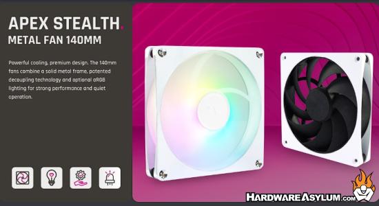 Practical features such as PWM control, daisy-chain connectors and clean cable management simplify installation and integration into existing systems. The Apex Stealth 140mm fans are offered in the color options Chrome, White and Matte Black, ensuring the right choice for any system design.