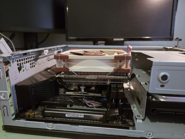 PC upgrades often occur in several steps with the most important happening first followed by various tweaks to either improve performance or fix issues that happen to crop up. While cooling is often overlooked there are real problems associated when you choose incorrectly. For the recent Podcast Machine rebuild we swapped out the Intel Core i7 4790k build for a much faster Core i7 13900k and Asus Mini ITX motherboard. Due to the increased power demands of the Intel 13900K the TFX PSU was upgraded to the Silverstone SST-TX500 but the same Noctua NH-L9x65 cooler was used. The NH-L9x65 is a low profile heatsink with four heatpipes but doesn’t have the thermal capacity to handle more than 85w of TDP.