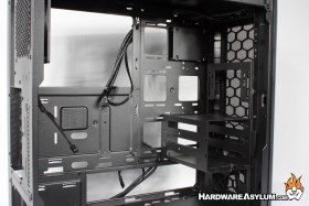 This kind of versatility goes a long way when it comes to customizing your case allowing the majority of us who only need a single hard drive to clean up the case internals with very little modification. Of course for those who actually need more hard drive locations they can buy expanded drive cages from Cooler Master and install them however they want.