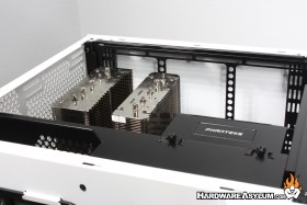 Installation goes about how you would expect. Motherboard mounted vertically allowing you to use the rest of the space for whatever cooler you happen to install. I’m using a generic dual tower cooler using 140mm fans and there is still plenty of clearance around the cooler and top of the case. The distance between the heatsink and back fan location is a little tight but largely depends on if you mount the fan to the cooler or the case.
