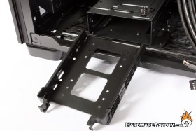 For storage there is a single 3.5” drive tray at the bottom of the case, this is removable if you want to run addition fans. Strangely enough there is a single 2.5” drive tray on top of this rack giving you a super-secret storage location that only your friends will know about.