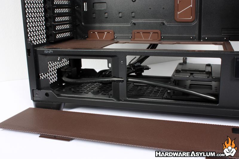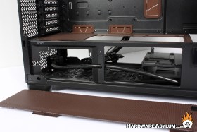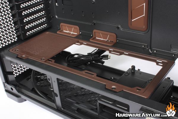 One of the cooling features of the Flux Pro is the ability to add additional fans to the basement panel as well as the bottom of the case. Since this panel is easily removed it has gotten the Noctua brown color applied.