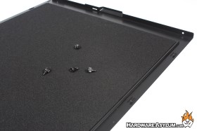 The bottom of the H2 is raised to assist with airflow through the bottom for both the power supply and another optional 120mm fan. A large mesh filter pulls out to prevent dust intake from the bottom. There are also several rubber feet around the bottom to increase stability and reduce vibration noise. The optional fan is a bit of a tight squeeze for larger power supplies and could cost you the bottom drive bay but would greatly aid the air intake of the H2.