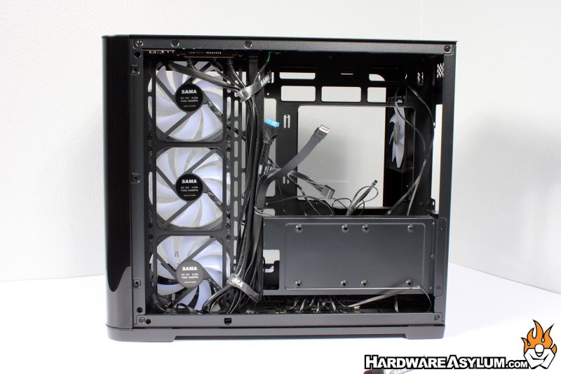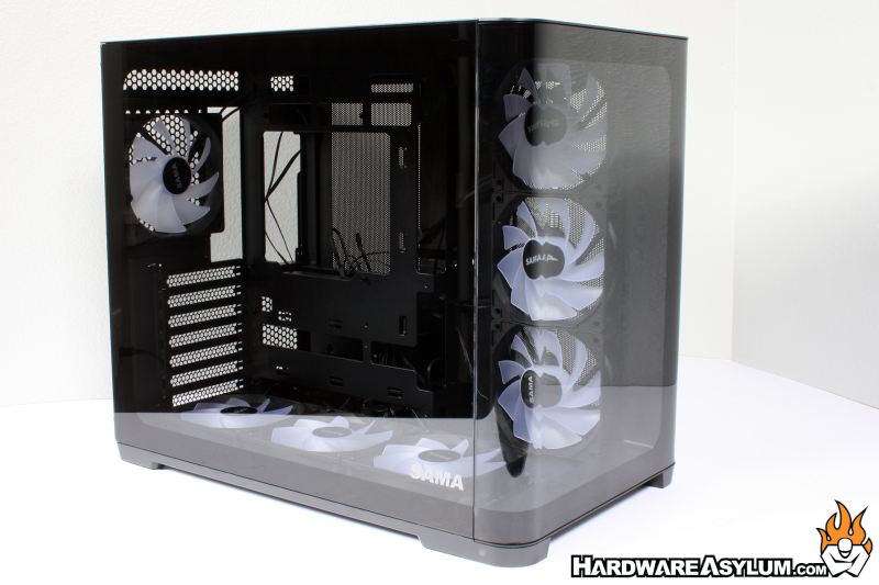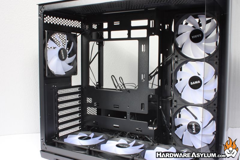 The center piece for this build is the Sama V60. As mentioned before the case is a dual chamber cube design with the motherboard and cooling on one side of the case and the PSU, Storage and cable management on the other.