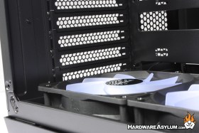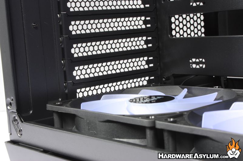 I mentioned that area at the bottom of the case is limited. Well, here is a shot of the pre-installed fans actually obscuring half of the last expansion slot. Normally this wouldn’t be an issue since most modern builds only use one of two of the available expansion slots.