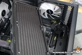For this build, the next thing I installed was the AIO cooler which slots in nicely at the top of the case. There is clearance with the rear mounted exhaust fan to slide the radiator forward and back the entire length of the case and looks like it is designed to be there.