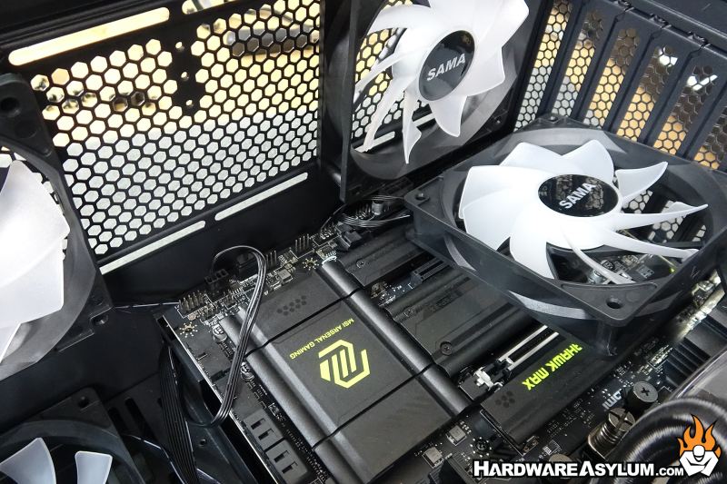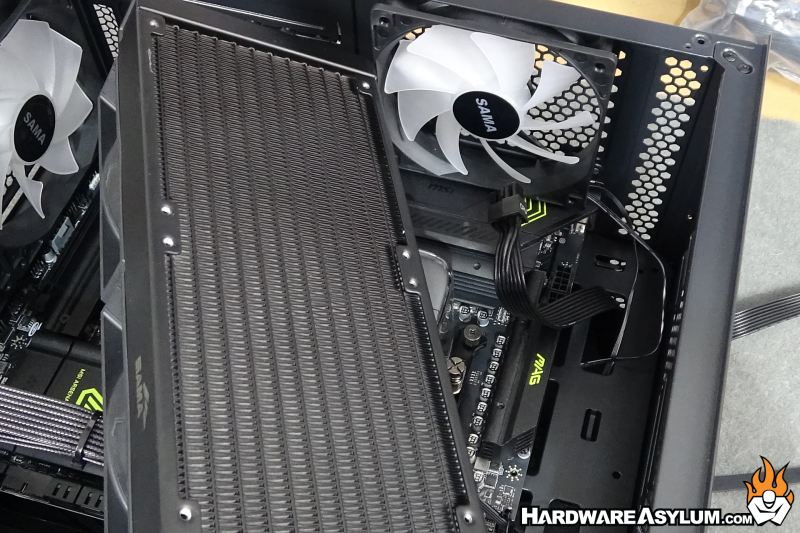 Of course, I promptly needed to remove the radiator to gain access to the two 8-pin CPU power connectors. Normally this wouldn’t have been an issue but the Sama G1000 CPU power cables are split in half and there is no way to lock the individual 4-pin blocks together.