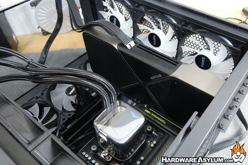 The final item to install on the front was the RTX 5080 graphics card using the single 12VHPWR cable. This cable is a stacked ribbon design making it rather easy to route but not long enough to do much with.