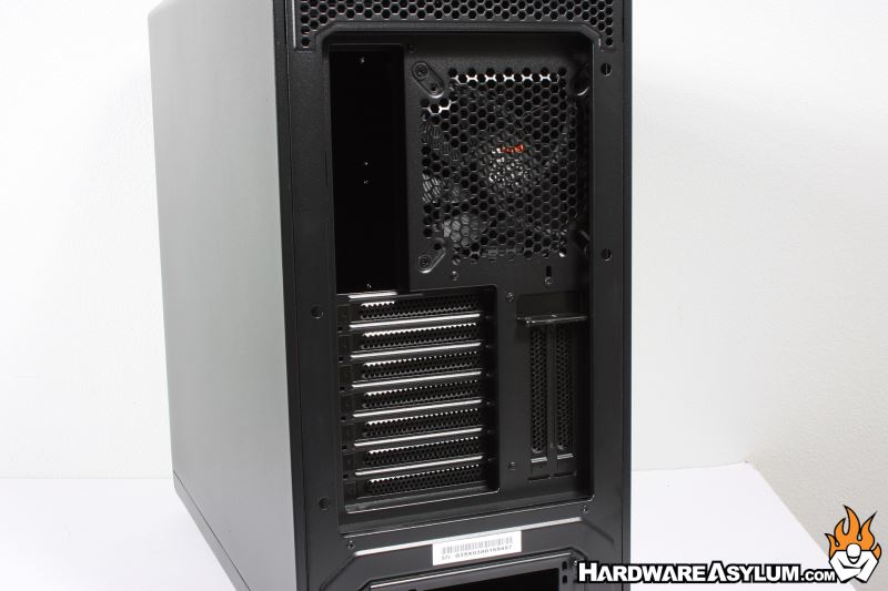 The back shows a lot of venting centered on the rear Pure Wings 2 140mm exhaust fan. While the Pure Wings 2 design is no longer the most cutting edge fan in the bequiet! Line they still provide excellent quiet operation (maximum speed 18.2-20.2db(A)) that far exceeds over nearly every OEM case fan.