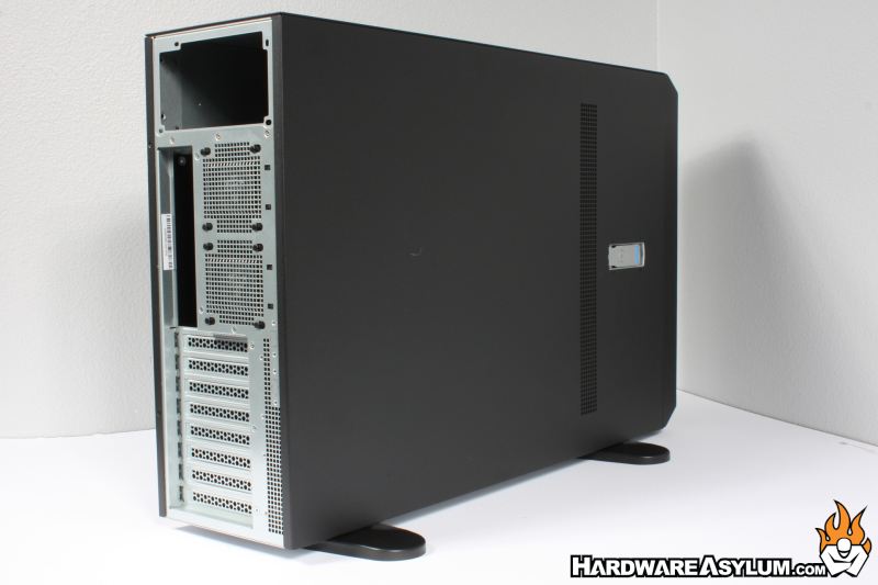 Unlike cases designed for gaming the WS380-E is quite skinny and is designed to conform to the rack spec of “units” (U). A “U” is a standard height used to determine capacity in a server rack and often shown as a multiple of 2. 1U and 2U servers are often custom designs while 4U and larger can handle standard desktop/workstation hardware. The SilverStone WS380-E is a 4U chassis with a default configuration to be a pedestal tower.