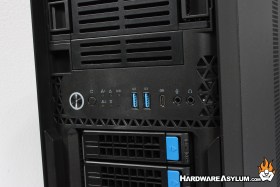 Behind the bezel you’ll find the power and reset buttons along with analog audio and microphone plugs. Two USB 3.0 and a single Type-C connection round out the front panel controls. Keep in mind the internal USB cables in this case are quite long at 800mm and will impact transfer speeds if longer cables are connected.