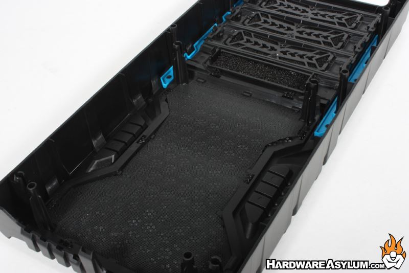 The power supply mounts are located at the bottom of the case and support both orientations for flexibility on your power supply choice. Thanks to the oversize feet, the bottom should breathe well even on carpet.