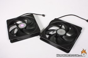 Of course fan performance is a deciding factor when choosing a cooling solution and the MasterLiquid ML280 Mirror comes with two Sickleflow 140mm fans. Each fan moves about 67 CFM @ 1400 RPM with a noise level of 27dBA (at full tilt). The PWM controller will spin the fans down based on your chosen fan profile.
