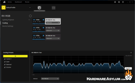 When you hover over the fans or fan hub you are presented with some shortcut links to specific features of that device. For the fans you can quickly view the lighting profile or fan rpm profile.