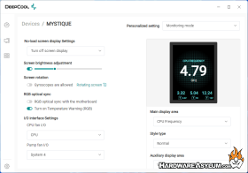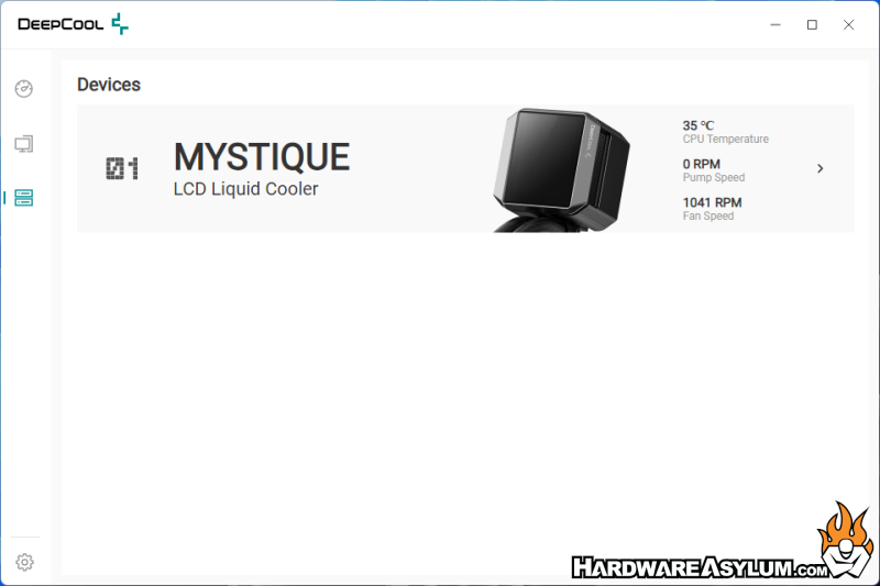 When you click devices (the bottom icon) you’ll get this section screen that will show all of the DeepCool products currently connected. Selecting Mystique will get you into the main configuration screen.