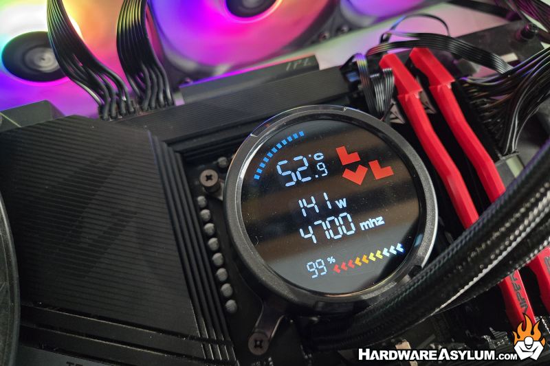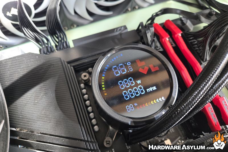 When the system is powered on but, doesn’t have the driver enabled the screen does into a self-check mode and will illuminate everything at once. Unlike some of the other coolers we have reviewed this one is very specific in what it will show so, while you won’t’ be able to watch your favorite anime you do get some rather helpful metrics from CPU temp, system load and frequency.