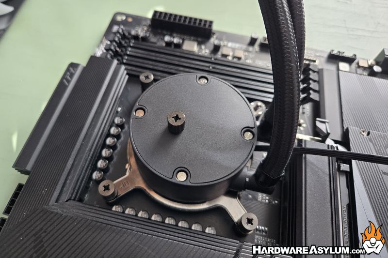 To install the cooler, simply align the holes in the mounting plate with the screw posts and lock it down using the included thumb nuts. You will want to install them in a progressive cross pattern to ensure even pressure. This also will ensure that the thermal compound makes great contact and makes the entire process easier.