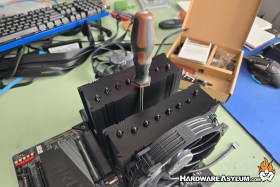 Of course, installation hardware for both AMD and Intel processor platforms and a very nice screw driver for installing the mounting hardware and heatsink. In a way, this screwdriver is a required component given that the two mounting screws are located between the cooling towers. In this past this was a traditional Philips head screw but has been updated to require a Torx bit.