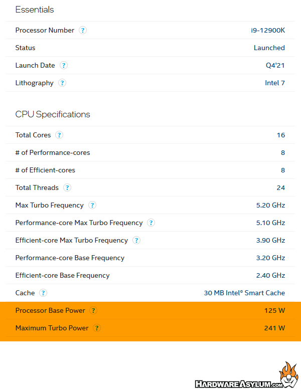 CPU Watts = 125W (or 137W due to turbo clock)