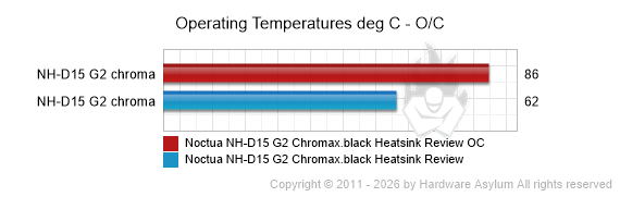 This difference also carried over to the overclocking tests where the G2 chromax.black posted a much higher load temperature but, with a lower overall C/W score indicating that this cooler has not reached its saturation point but does improve performance with higher fan speeds.
