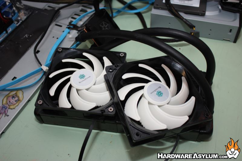 The cooling fans will need to be installed using the included screws. You can install them in a push configuration like what we have or a pull by having them pull air though the heatsink. Pull is usually more efficient even though push is illustrated in the instruction manual.