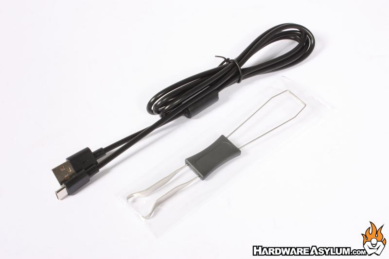 Also included are a simple key removal tool, a simple USB-C cable at about 5.5 feet (~1.7 Meters) a warranty sheet and a simple user’s manual.