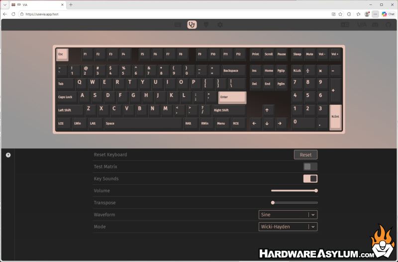 The Keytest page provides a full suite to test your key switches with an audio indicator.