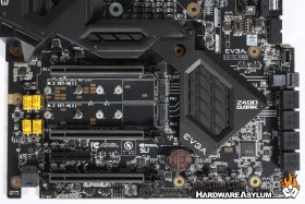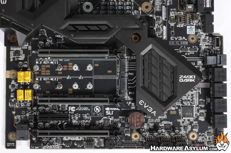 One notable feature on the EVGA Z490 Dark is slot six sized as a 4x expansion slot which is notched so you can install longer cards. For bandwidth you’ll still be limited to 4x lanes of PCI Express but are no longer limited to just 4x cards.