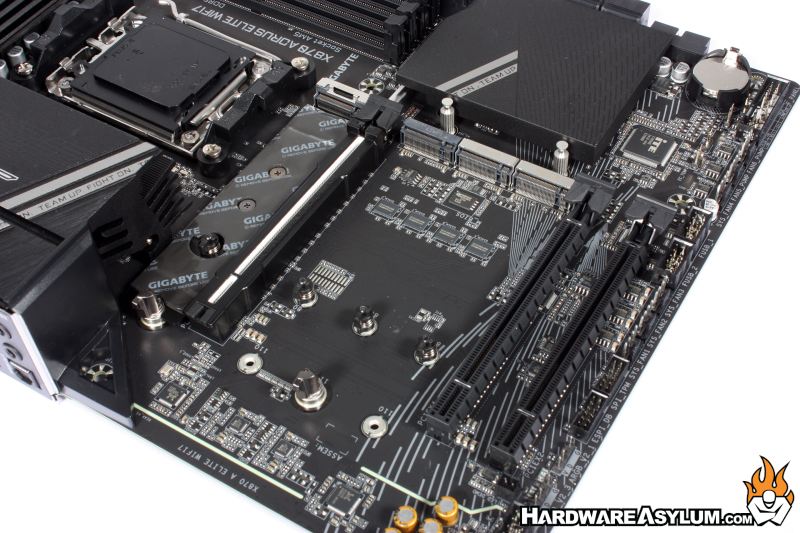 Another amazing feature of the “X” generation motherboards is the quick latch system. This system gives you 100% toolless access to the M.2 drives through a spring-loaded metal twist latch. Simply twist to release the heatsink cover and press the cover down to reinstall. This makes installation a snap and something you can do without fear of breaking the latch.