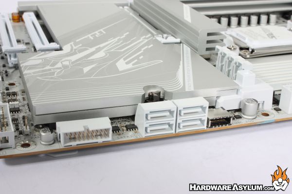Internal SATA connections number four and follow the SATA6 connection standard. Next to the SATA connectors you’ll find a standard USB 3.0 header along with a single USB 3.2 port. This port at the front is the special 65W QC-USB and will need the 8-pin power connector to function correctly.
