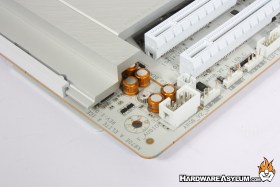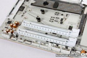 Despite the lack luster audio connections the board does feature the Realtek ALC1220 CODEC with two channel analog output and 7.1 using the digital signals. I have noticed that with the migration to USB based audio controllers there has been less effort put into protecting the various components from EMI, even the separation line is just painted on.