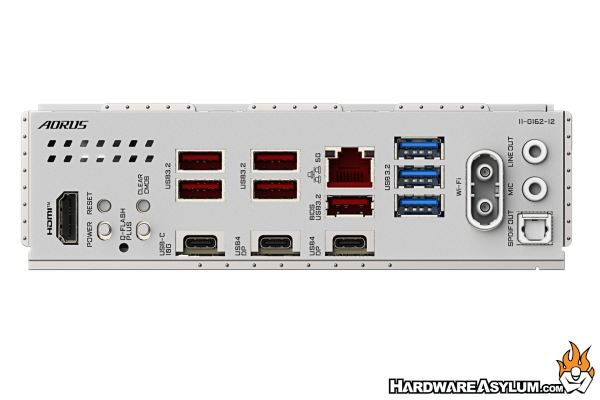 The I/O panel is always an interesting part of the motherboard as it dictates what connectivity options will be available. Staring at the left we have a single HDMI port followed by a new button pack for Power, Reset, Q-Flash and Clear CMOS. The majority of the USB ports are all USB 3.2 Gen 2 with the exception of the blue ports to the far right and the two right most Type-C ports. Those are a USB4 40Gb/s port with DisplayPort-Alt connectivity.