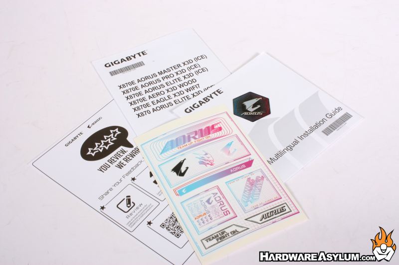 The Aorus X870E Elite X3D Ice motherboard comes with everything you see here. It isn’t much but, should be enough to get up and running. It makes me sad that the motherboard accessory bundle has been reduced to a pair of SATA cables and WiFi antenne but, that is the cost of progress.