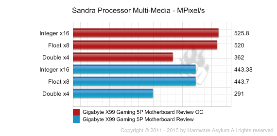 As with all of our reviews, we pit the default speed system against the overclocked one in a head-to-head byte match. The effective overclock for these tests is 4.3Ghz @ 43x multiplier and 100Mhz BCLK. Overclocking the X99 Gaming 5P wasn’t as easy as you would think given our experience with overclocking Gigabyte products. Of course the first 4Ghz was easy, 4.5Ghz was unstable and 4.4Ghz was getting better but not enough to complete the testing suite. Likewise when attempting to change BCLK we would always get a failed boot and pretty much gave up trying to tune the motherboard.