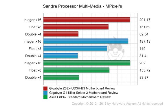 Sandra is a software collection of synthetic benchmarks that will give us a basic idea as to what a system is capable of. It should be noted that SiSoft numbers change depending on what version you have installed; these were recorded using Sandra Professional Version 18.26.2012.1
