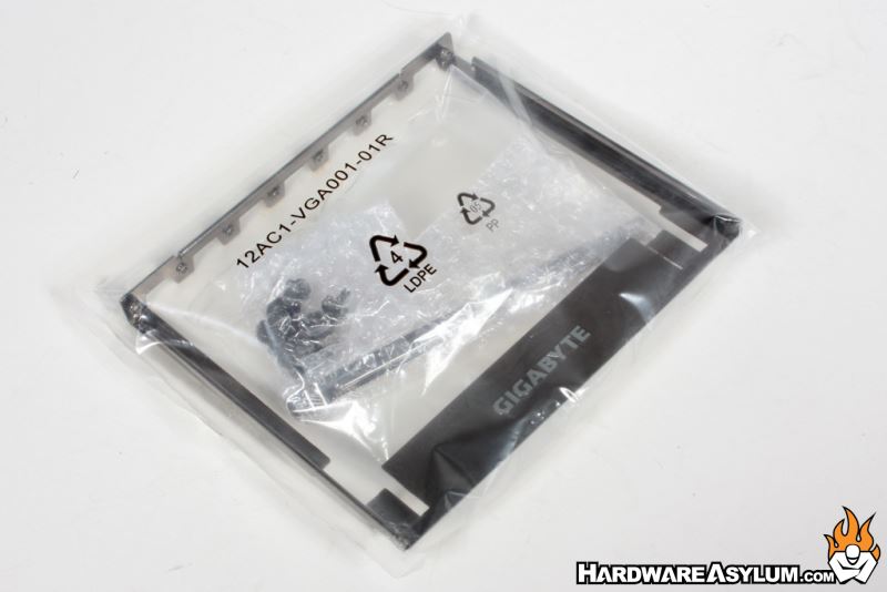 OC Brace is a bolt on card retention bracket that allows you to properly secure video cards when you are without one on your test bench. This is a great included feature and we suspect will eventually fetch a high price on the black market. That is until someone comes along with a better test bench solution.