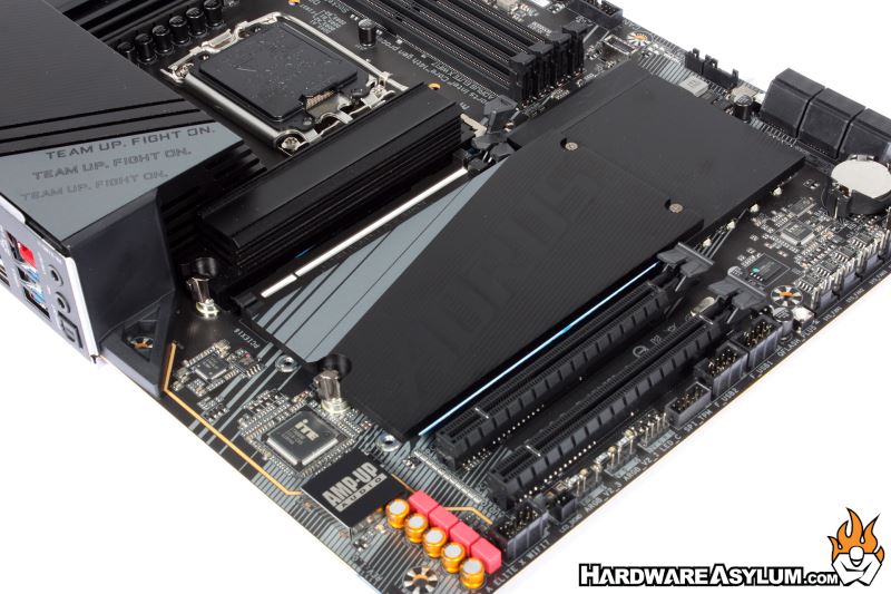 On the Z790 Elite X the primary M.2 drive cover features an extra large finned aluminum heatsink to help maintain optimal drive temperature for the best performance.