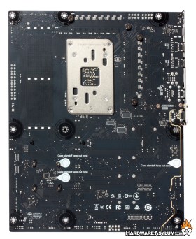 Looking at the back of the motherboard can tell you a lot about how any particular board is constructed. Typically, you’ll see things like how the PCI Express slots are wired up and where the major components are located. With the advent of PCI Express 5.0 many board makers have started to use surface mount expansion slots in an attempt to reduce EMI.