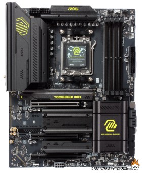 The CPU VRM is a Digital twin 14+2+1 design with a total of 17 VRM power phases with high performance thermal pads and extended heatsink design wrapping around the top sections of the PCB.
