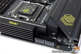 CPU power is delivered by two dedicated 8-pin power sockets located behind the large VRM cooler. While access is tight there is still plenty of room to connect and remove the required cables.