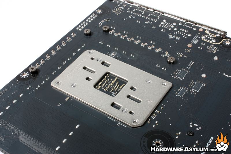 The CPU socket is rather typical for the AM5 platform. Across the top and bottom of the socket you’ll find the heatsink retention brackets and almost always get removed when installing an aftermarket heatsink. What is nice about this configuration is that the backplate remains allowing you to secure everything into a factory part that is extremely strong.