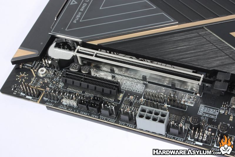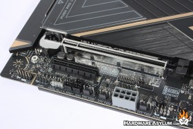 At the bottom of the motherboard you will find an additional PCI Express power connector. These are typically reserved for additional graphics cards however, with the number of M.2 drive slots there is a strong chance that more power will help with stability.