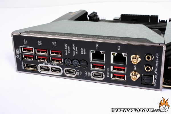 The I/O panel is always an interesting part of the motherboard as it dictates what connectivity options will be available. The MSI MEG X870E ACE Max has quite the I/O layout that is not quite like anything I have seen before.
