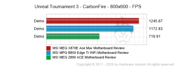 UT3 is the fourth game in the Unreal Tournament series. It has no story mode gameplay and is exclusively designed for multiplayer action. While the gameplay and weapons are similar to the UT2004 counterpart, the gaming engine is all new. For this benchmark, we're using the UT3Bench tool from Guru3D, and CarbonFire Botmatch to record framerates. The resolution was set to 800x600 to minimize any performance gains from the video card.