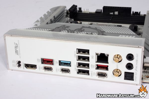 The I/O panel is always an interesting part of the motherboard as it dictates what connectivity options will be available. Starting at the left we have two small buttons for Flashing the BIOS and Resetting the BIOS. Next to that you will find a single HDMI for processors with onboard video. This is followed by an entire host of USB ports including three supporting 10G and several at USB 2.0 for your low speed peripherals including keyboard and mouse.